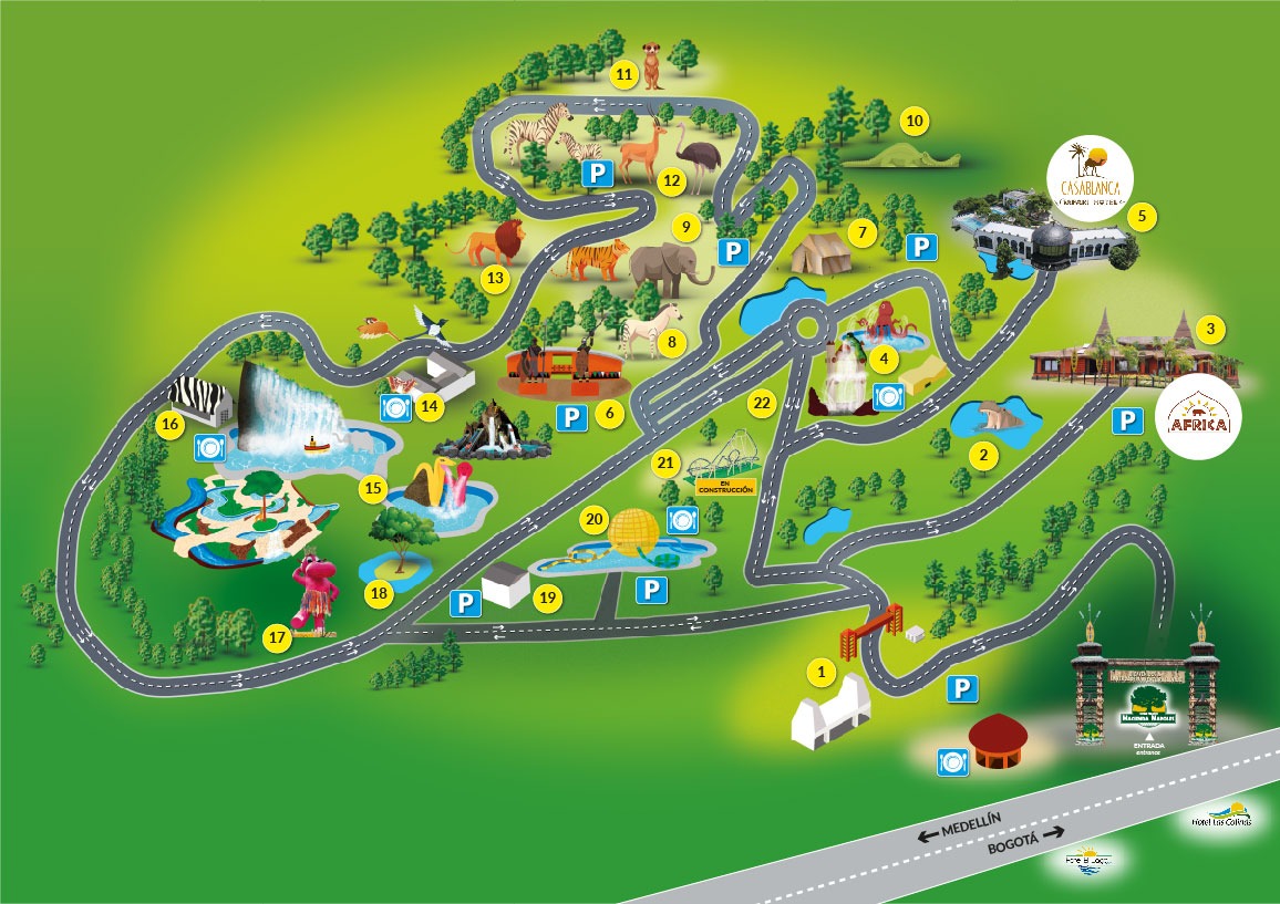 Hoy, este lugar es famoso por su increíble safari, donde podrás observar animales como jirafas, cebras, elefantes e incluso hipopótamos en un entorno abierto. Además, cuenta con parques acuáticos, toboganes gigantes, zonas interactivas y espacios naturales ideales para el descanso y la aventura.